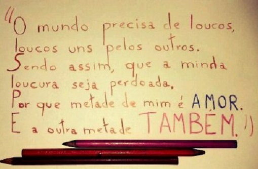 Cada um de nós carrega uma dose saudável de loucura, e é maravilhoso sermos saudavelmente apaixonados!