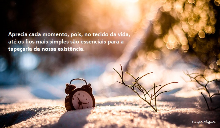 Assim, que possamos lembrar, a cada passo, a importância de viver com entusiasmo, amar com paixão, abraçar com calor humano e sorrir com alegria. Que não deixemos nada por dizer, fazer ou alcançar, pois o tempo, o recurso mais valioso, escorre como areia fina. Cada momento é uma oportunidade para tecer a trama da nossa existência com significado e propósito, criando um quadro vibrante e enriquecedor na nossa caminhada. Aprecia cada instante e faz com que cada segundo conte na busca incessante pela felicidade e realização, porque, no final, é a forma como vivemos cada momento que define o verdadeiro valor da nossa vida.