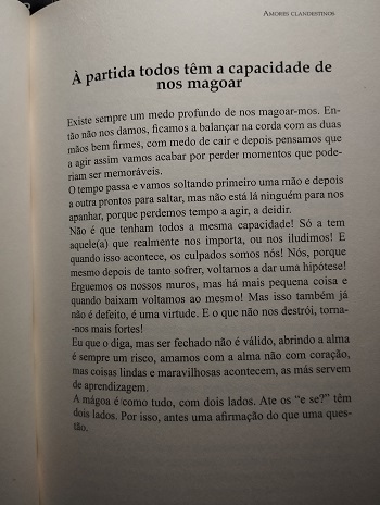Existe sempre um medo profundo de nos magoar-mos. Então não nos damos, ficamos a balançar na corda com as duas mãos bem firmes, com medo de cair e depois pensamos que a agir assim vamos acabar por perder momentos que poderiam ser memoráveis.