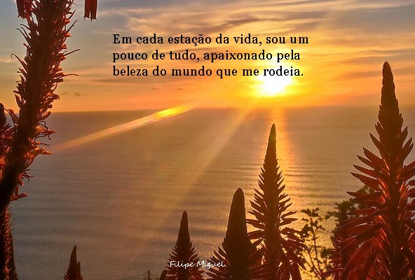 Em cada estação, sou eu mesmo, um pouco de tudo e de nada, como as mudanças da natureza. Sou menino e sou homem, sou a vida em toda a sua plenitude, um eterno apaixonado pelas pequenas e grandes maravilhas que me rodeiam.