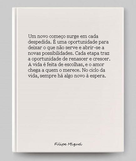 Cada fim é também um belo começo. Sinto que a vida é uma dança, um ciclo que continua a girar. E, mesmo quando parece que tudo acaba, no fundo, há sempre um novo lugar à espera, pronto para ser descoberto. É a beleza da vida: recomeçar, aprender e crescer.