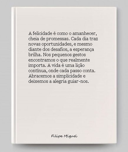 A felicidade é como o amanhecer. Cada dia que começa traz consigo a promessa de algo novo. Quando os primeiros raios de sol iluminam o quarto, a esperança entra pela janela, e mesmo que os desafios se acumulem, uma chama interior faz-nos sentir vivos.