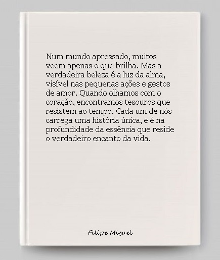 Num mundo repleto de rostos e cores, muitos procuram a beleza apenas na superfície, nas imagens que encantam, mas que com o tempo, desvanecem como o brilho de um pôr do sol. No entanto, a verdadeira beleza reside na profundidade da alma, na capacidade de enxergar o que está além do olhar.