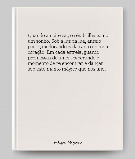 Sob essa luz, deixo-me levar. Vou explorar cada canto do céu, prometendo que um dia te encontrarei. As estrelas e a lua são as guardiãs dos meus sentimentos, e em cada sussurro, revelo o meu desejo profundo: quero perder-me em ti, descobrir um mundo novo em cada olhar.