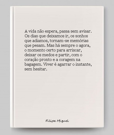 Cada amanhecer é uma nova página, uma chance de viver de coração aberto. E quando estamos prontos, quando as malas estão feitas e o passado não nos prende, podemos caminhar para o desconhecido com esperança. A vida é um presente e a felicidade está ao alcance, a cada passo, se tivermos coragem de seguir em frente.