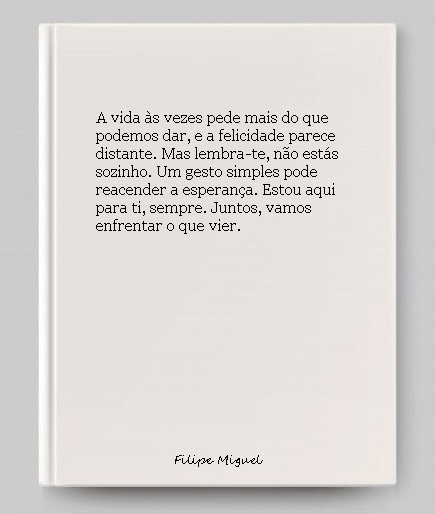 Fica com quem te quer bem, com quem te acolhe nos dias mais cinzentos, porque é no calor desses gestos que a vida ganha sentido. Lembra-te, estou aqui, em qualquer lugar, em qualquer momento. Nunca subestimes o poder do teu ser, a força que tens dentro de ti. Sempre que precisares, não hesites em me procurar. Juntos, vamos enfrentar tudo o que a vida nos reserva.
