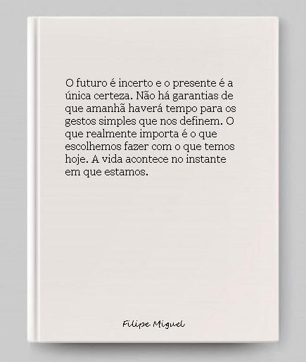 O amanhã pode ser tarde demais, mas hoje, este instante, é todo meu. É tudo o que tenho. Não vou esperar. Vou viver com intensidade, aproveitar o que me é dado, sem arrependimentos. A vida acontece agora, e é nela que encontro o que realmente importa.