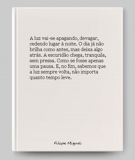Sentados na varanda, observamos o pôr do sol. O cenário é tranquilo, como se o mundo tivesse parado por um momento. — Sabes, — disse-te, sorrindo, — a luz do dia vai embora, mas deixa algo para trás. Um rastro que nos lembra de como os dias passam rápido.
