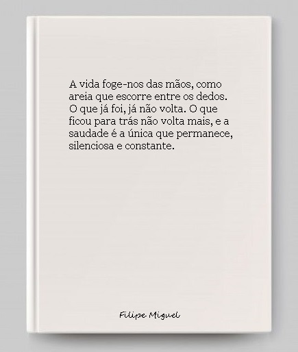 A vida escapa, como vento no ar. Fico aqui, sem saber onde ir. As memórias ficam, mas o resto se foi. E a saudade, essa, permanece, como uma sombra que nunca me deixa.