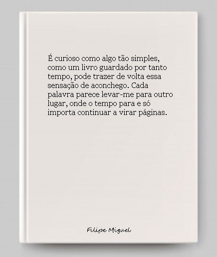 Levei-te comigo, guardado no peito, como um amigo fiel, que sempre está ali quando a solidão aperta. O teu calor envolveu-me como um abraço tranquilo, depois de tanto tempo fechado, escondido na prateleira. O cheiro do papel, já gasto, misturava-se com o da tinta, criando uma sensação de casa, de algo familiar. A luz da tarde, entrando pela janela, aquecia o ambiente e fazia o momento parecer ainda mais especial.