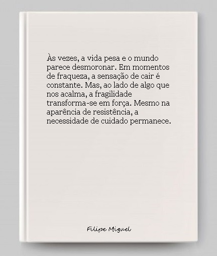 Mas, por favor, cuida de mim. Porque mesmo quando me sinto forte ao teu lado, a minha fragilidade está sempre lá, à espera de ser protegida.
