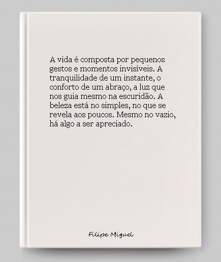 Por fim, agradeço as palavras e os versos. Eles me ajudam a entender o que sinto, a expressar quem sou. Cada palavra é um reflexo de tudo o que vivi, e faz-me lembrar que, apesar de tudo, a vida vale a pena.