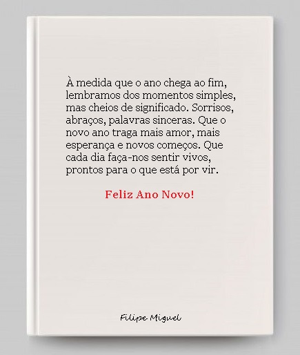 Não há passado nem futuro, só este instante que temos nas mãos. Que o novo ano nos traga mais do que esperamos: coragem para mudar, alegria para celebrar e força para continuar. E que nunca faltem beijos, abraços e aqueles encontros em que o mundo parece, por um segundo, um lugar perfeito.
