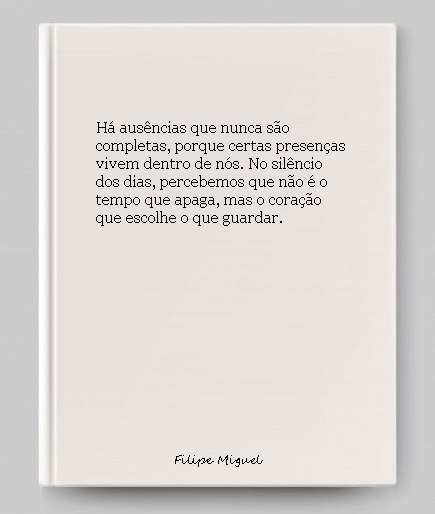 O vento lá fora agitava as árvores, mas a casa estava em silêncio. Aqui dentro, só eu e as minhas memórias. Não estás comigo, mas és impossível de esquecer. Procuro-te nos lugares onde costumávamos estar, mas o vazio é a única resposta. Ainda assim, quando fecho os olhos, a tua imagem surge como se nunca tivesses partido. Consigo ver o teu sorriso, ouvir a tua risada, quase sentir a tua presença.