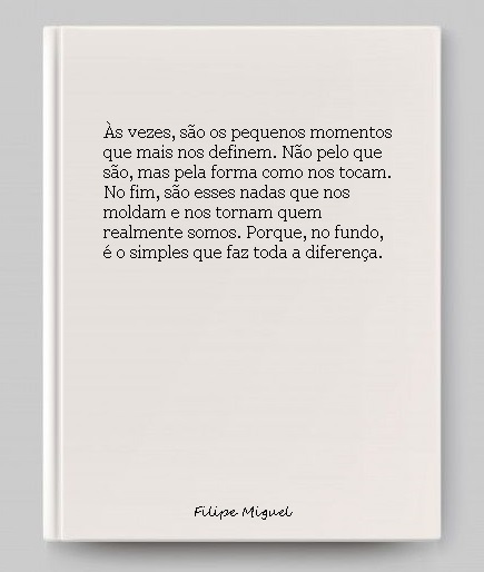 Há algo nos pequenos momentos que, de tão simples, tocam mais fundo. Eles não pedem atenção, mas, sem saber, mudam tudo. Talvez seja isso que realmente importa: esses detalhes invisíveis que, no fim, nos fazem ser quem somos. E, quando olho para trás, percebo que, mesmo que pareçam banais, foram esses nadas que me tornaram gente.