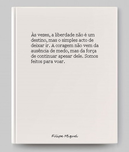 Ela fechou os olhos e deixou-se levar pelo vento. Sentiu-o acariciar-lhe o rosto, misturado com o cheiro da noite e da frescura do ar. Um sorriso, quase imperceptível, escapou-lhe enquanto flutuava, sentindo-se leve. A lua, lá no alto, brilhava com uma luz suave, guiando-lhe o caminho. Naquela noite, não havia medo. Era como uma borboleta que, apesar de receosa, avançava com confiança. Ela sabia que estava a dar um passo em direção à liberdade, a algo maior. Não queria voltar atrás, não queria mais ser limitada. Era livre. E naquele momento, a liberdade era mais que uma palavra — era um caminho que ela escolhera seguir. O seu sorriso era a sua força, e sabia que não devia esconder quem realmente era. O vento, as estrelas, a lua — tudo parecia concordar com ela. Ela podia voar, e nada a impediria.