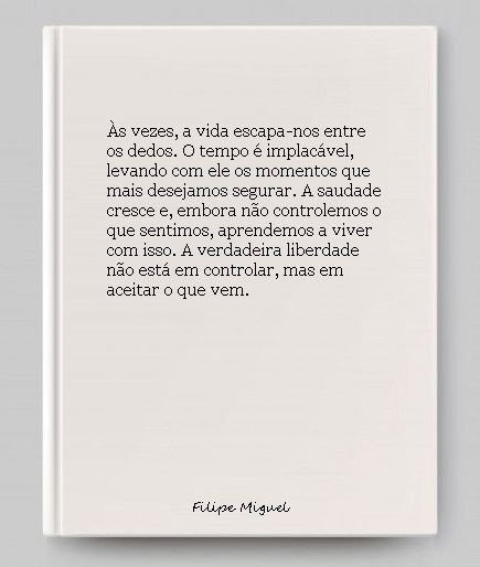 O tempo, esse sim, é o maior de todos os enigmas. Os dias passam rápido demais, como se fosse areia escapando por entre os meus dedos. E, enquanto o tempo me escorre pelas mãos, uma saudade cresce dentro de mim, forte, como uma planta que não consigo arrancar.