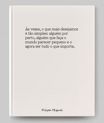 Quero-te perto, porque perto de ti tudo faz sentido. És o calor que afasta o frio, o sorriso que ilumina a escuridão, a primeira imagem que quero ao acordar. Nas manhãs tranquilas, no silêncio que antecede o dia, é o teu rosto que quero ver. E quando a chuva nos surpreende, quero correr contigo, rir sem pressa, viver o momento como se o mundo lá fora não importasse. Porque contigo, cada instante é único. Mesmo quando o destino nos separar, sei que te levo comigo, não apenas nas lembranças, mas como uma parte de mim que nunca me deixa. E nesse querer que nunca cessa, resta-nos o aqui, o agora, o eterno de dois corações que se encontram.