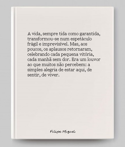 Houve momentos em que o chão parecia desaparecer sob os meus pés, e a vida, sempre tida como garantida, transformou-se num espetáculo frágil e imprevisível. Gradualmente, os aplausos retornaram, como um discreto coro celebrando cada pequena vitória, cada resultado positivo, cada manhã sem dor. Era um louvor ao que muitos não percebem: a simples alegria de estar aqui, de sentir, de viver.