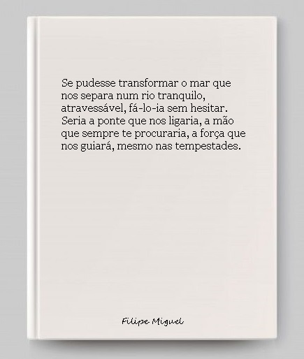 Procuro-te com os olhos no horizonte, mas só vejo o mar à minha frente. Sentado na areia, cada onda que quebra na costa parece trazer-te até mim. A água fria toca os meus pés, mas em vez de arrepio, sinto o calor dos teus beijos, como se viajassem nas marés. A brisa marinha envolve-me e, por um instante, respiro o teu perfume, como se estivesses aqui, tão próxima. Fecho os olhos e quase consigo tocar-te. Se pudesse encurtar esta distância que nos separa, já o teria feito. Penso em ti constantemente, a tua imagem gravada nos meus pensamentos, o teu rosto sempre presente no meu olhar. Nos meus sonhos, és real, abraço-te como se nunca tivesses partido, perco-me nos teus beijos, entregue à doçura dos teus abraços. Abro os braços e, mesmo no vazio, é como se te sentisse aqui. Porque estás em mim, de uma forma indescritível, no meu coração, na minha alma. Estás em tudo. Se pudesse transformar o mar que nos separa num rio tranquilo, atravessável, fá-lo-ia sem hesitar. Seria a ponte que nos ligaria, a mão que sempre te procuraria, a força que nos guiará, mesmo nas tempestades. Eu seria o que precisasses que fosse, a magia do nosso amor, a essência do nosso ser. Se apenas pudesse…