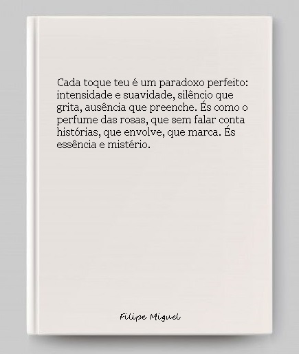 Cada toque teu é um paradoxo perfeito: intensidade e suavidade, silêncio que grita, ausência que preenche. És como o perfume das rosas, que sem falar conta histórias, que envolve, que marca. És essência e mistério.
