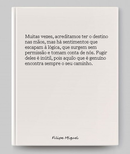 Não foi intencional, pois se eu realmente o desejasse, teria feito tudo para evitar. A verdade é que, por mais que tentasse afastar-me, por mais que pedisse ao meu coração para manter distância, ele simplesmente ignorou os meus apelos. Comecei a amar-te sem sequer perceber, como se o amor se infiltrasse em mim, silenciosamente, sem que eu pudesse resistir.