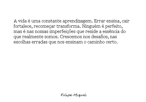 Crescemos nas dificuldades, nas quedas que damos, quando fazemos escolhas erradas e reconhecemos o nosso erro. A vida é uma autentica aprendizagem sabendo ouvir, ir à luta usando os bons valores e ensinamentos.