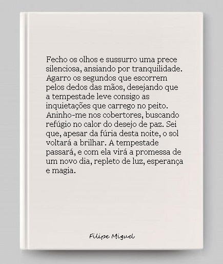 Aninho-me nos cobertores, buscando refúgio no calor do desejo de paz. Sei que, apesar da fúria desta noite, o sol voltará a brilhar. A tempestade passará, e com ela virá a promessa de um novo dia, repleto de luz, esperança e magia.