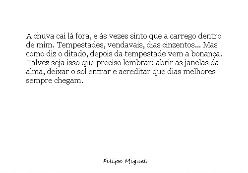 É bom acreditar e esperar que a tormenta passará e acreditar nas esperanças de um amanhã melhor.