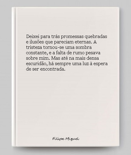 Deixei para trás promessas quebradas e ilusões que pareciam eternas. Caminhei sozinho na noite, perdido nos meus próprios pensamentos. A tristeza tornou-se uma sombra constante, e a falta de rumo pesava sobre mim. A escuridão envolvia-me, e os ventos sussurravam segredos indecifráveis. Sob a luz de mil sóis apagados, os dias vestiam-se de cinza.
