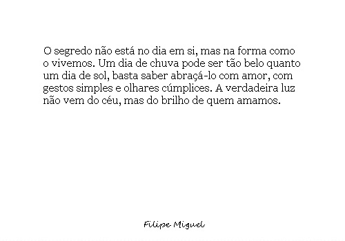 Na cumplicidade do olhar, de um abraço, com a chuva fina a cair e o vento assobiando lá fora percebi que o dia seria especial e belo, como se brilhasse o sol.