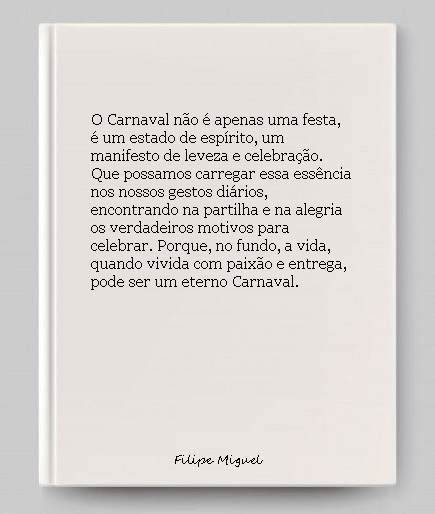 No Carnaval, o mundo veste-se de festa e transborda alegria. Durante três dias, a rotina cede lugar à magia, e cada rua transforma-se num palco onde a vida dança ao compasso da celebração. Sob o brilho das máscaras e das serpentinas, dissolve-se qualquer resquício de melancolia, abrindo espaço para uma energia contagiante que une todos num só espírito de comunhão.