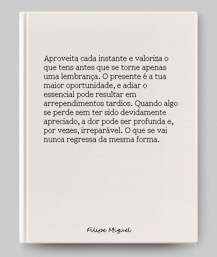 Aproveita cada instante e valoriza o que tens antes que se torne apenas uma lembrança. O presente é a tua maior oportunidade, e adiar o essencial pode resultar em arrependimentos tardios. Quando algo se perde sem ter sido devidamente apreciado, a dor pode ser profunda e, por vezes, irreparável. O que se vai nunca regressa da mesma forma.
