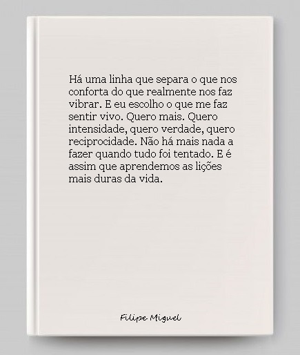 Eu queria-te… mas tu… Escolheste outro caminho. E agora já não há mais espaço para dúvidas ou esperas. Há uma linha que separa o que nos conforta do que realmente nos faz vibrar. E eu escolho o que me faz sentir vivo. Quero mais. Quero intensidade, quero verdade, quero reciprocidade. Não há mais nada a fazer quando tudo foi tentado. E é assim que aprendemos as lições mais duras da vida.