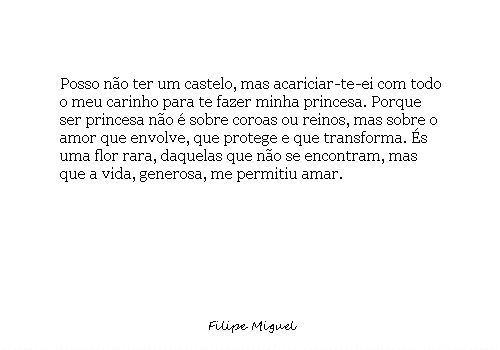 Não sou um príncipe, mas farei de ti a minha princesa no meu humilde reino, na plenitude da felicidade, com todo o meu amor.