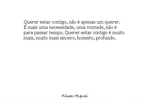 Querer estar contigo, não é apenas um querer. É mais uma necessidade, uma vontade, não é para passar tempo. Querer estar contigo é muito mais, muito mais sincero, honesto, profundo.