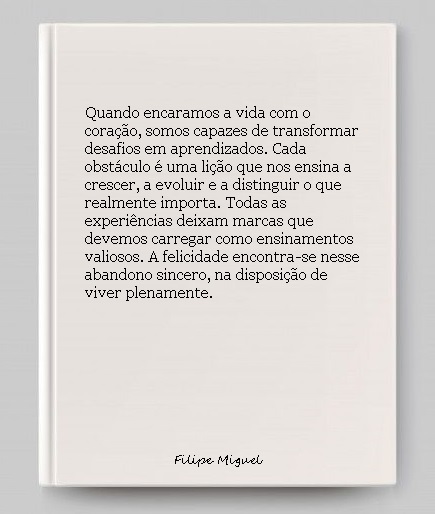 Quando encaramos a vida com o coração, somos capazes de transformar desafios em aprendizados. Cada obstáculo é uma lição que nos ensina a crescer, a evoluir e a distinguir o que realmente importa. Todas as experiências deixam marcas que devemos carregar como ensinamentos valiosos.