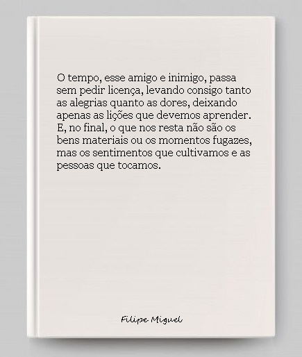 No calor do teu abraço, o tempo suspende-se. Tudo o que importa és tu e eu, ligados por um laço que transcende o efémero. O nosso amor manifesta-se em cada toque, em cada olhar trocado, em cada suspiro partilhado. “Sou teu!”, declaro com a certeza absoluta de que este sentimento é eterno. Prometo-te, meu amor, amar-te-ei para sempre, hoje e em todos os amanhãs que nos esperam.