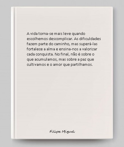 Simplificar a vida é abrir espaço para a felicidade autêntica. Esse passo essencial conduz a um viver mais pleno e verdadeiro. Quando escolhemos descomplicar, criamos uma base sólida para o nosso bem-estar. Seguir por um caminho mais leve permite-nos viver em paz, guiados pelo amor e pela verdade. No fim das contas, a vida é feita de pequenos momentos, e é neles que reside a verdadeira alegria.