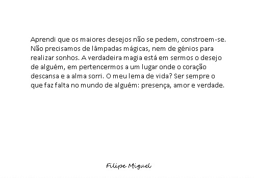 -Eu tive o meu momento de definir o meu desejo, mas não era preciso pensar num desejo, já há muito tempo sabia qual seria.