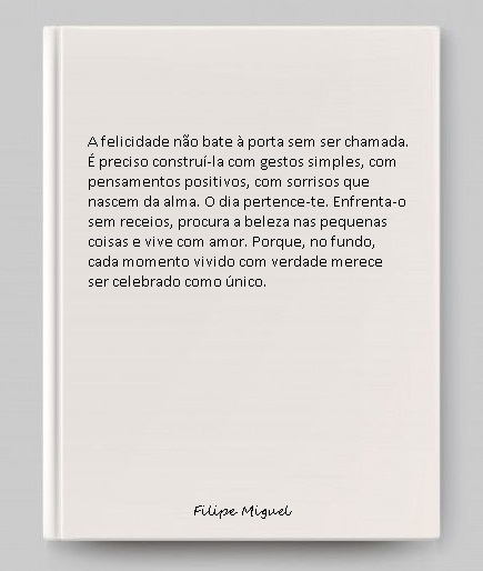 Por isso, não adies a tua alegria. O dia pertence-te. Enfrenta-o sem receios, abraça a simplicidade, procura a beleza nas pequenas coisas e vive com amor. Porque, no fundo, cada momento vivido com verdade merece ser celebrado como único.