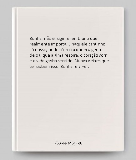 Nem sempre sonhar é fugir. Às vezes, é só uma forma de nos lembrarmos do que realmente importa. Entramos nesse mundo nosso, feito de memórias, desejos e abraços que, mesmo imaginários, aquecem como reais. E é tão bom sonhar… tão bom sentir que ali, pelo menos ali, tudo está no sítio certo.