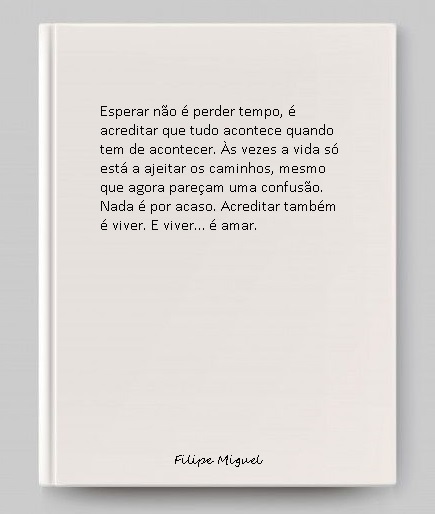 Tudo tem o seu tempo. Às vezes queremos tudo para ontem, mas a vida não funciona assim. A pressa e a pressão só atrapalham, são más conselheiras. Esperar não é perder tempo, é confiar que cada coisa acontece quando tem de acontecer. Basta ter fé, observar com calma e acreditar, mesmo quando tudo parece confuso.