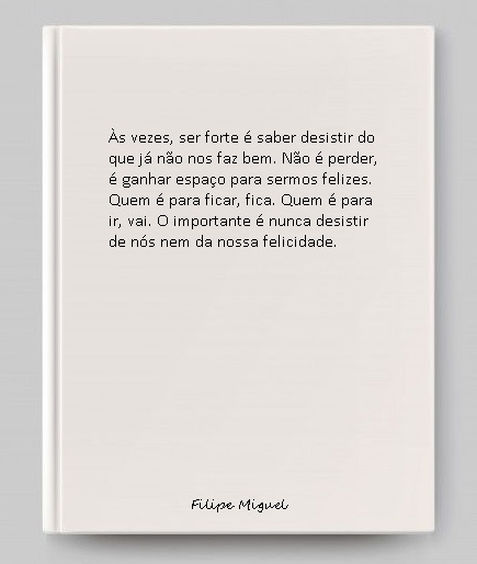 Desistir não é vergonha nenhuma. Aliás, é uma prova de inteligência perceber que insistir no que nos faz mal só nos afasta da felicidade. Quando optamos por terminar o que nos destrói, abrimos espaço para coisas boas entrarem. Desistir, nestes casos, é ser forte, é entender que não vale a pena perdermos mais pedaços de nós num lugar onde já não existe “nós”.