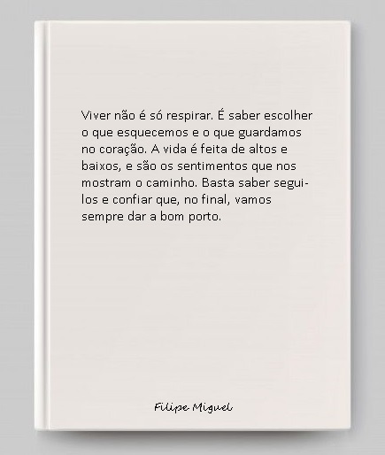 São eles que marcam o ritmo da nossa vida. Cabe-nos a nós, apenas, decidir se aproveitamos a maré ou se deixamos passar. Viver não é só respirar. Saber viver é uma arte: é saber o que devemos esquecer e aquilo que vale a pena guardar no coração. É como navegar, escolher bem o rio certo que nos leva a bom porto.