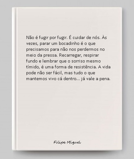Não é fugir por fugir. É cuidar de nós. É dar-nos espaço para recarregar, ganhar fôlego e seguir em frente com mais força. Porque a verdade é que viver não é fácil. Sonhar, lutar, cair e voltar a tentar… tudo isso cansa. E se não cuidarmos da nossa energia, acabamos por nos perder no meio da pressa.