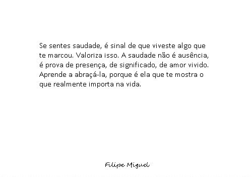 A saudade que nos revela tantas coisas e nos dá todas as respostas às nossas dúvidas.