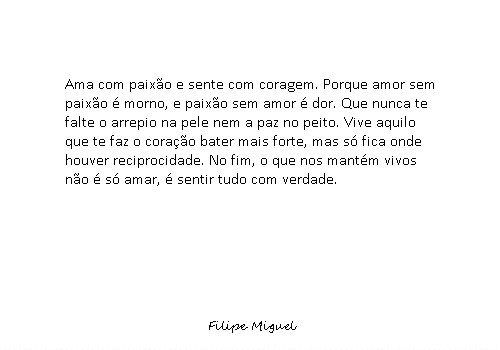 Já o amor é perfeito. Mas amor sem paixão não me faz sentido. A paixão faz falta. Faz abanar o amor calmo.