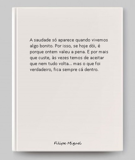 As saudades têm esse dom cruel: fazem-nos reviver tudo o que foi bom, mas também tudo o que já não é. E isso pesa. Mas também mostra que vivemos algo bonito, algo verdadeiro. E isso, por mais que doa, também é amor.