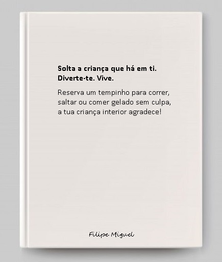 Solta a criança que há em ti. Diverte-te. Vive. E, acima de tudo, não te esqueças: às vezes, ser criança é o melhor que podemos ser.